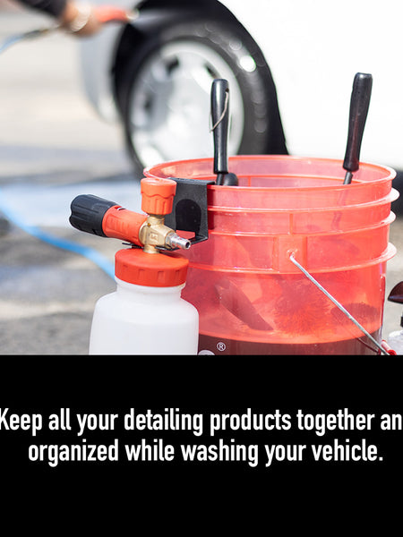 Maxshine’s new Foam Cannon Bucket Mount allows you to attach your Maxshine Snow Master or Lance Foam Cannons to your wash bucket. Keep all your detailing products together and organized while washing your vehicle.